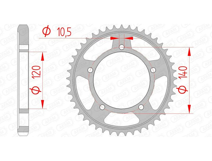 I professionisti posteriori in acciaio Afam sono lavorati in acciaio C45 e vengono quindi trattati con una maggiore durezza e persino resistenza. Il processo di produzione di alta qualità e la precisione di taglio hanno reso AFAM un leader mondiale per le parti di trasmissione della moto. Sprockettop posteriore in acciaio della gamma di produzione e qualitàContrabutes al kit di trasmissione Durabilità catena_pitch: 530.0 Materiale: acciaio posteriore_prolet_teeth_count: 42.0 rear_proet_type: