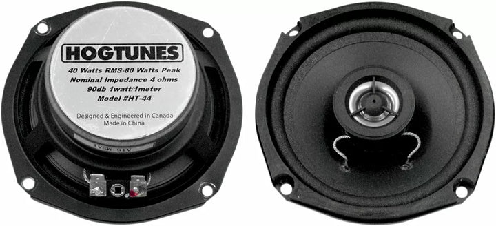 Altoparlanti di sostituzione diretta per bici modello 86-96 dotate di radio di fabbrica, adattarsi dietro griglie di fabbrica, include bombe in gomma morbida da 10 mm per un adattamento migliorato, altoparlanti da 4,25 ", 4 ohm, sound design a 2 vie, Hogtunes Featur" usando hardware di fabbrica, può essere utilizzato su bicchetta con un kit di conversione per auto per auto