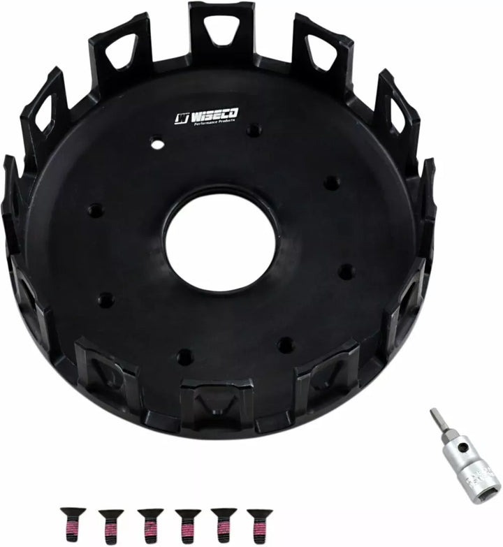 Forgiato dalla lega di alluminio aerospaziale leggero; La lavorazione a CNC garantisce che ogni cestino della frizione sia identico ai tagli di rilievo di risparmio di peso successivo all'esterno della frizione, riducono la massa rotazionale, consentendo al motore di far aumentare la lubrificazione più rapida e di olio di olio e ridurre l'accumulo di calore, l'accumulo di PTFE rende completo di armadietto del filo pre-applicato
