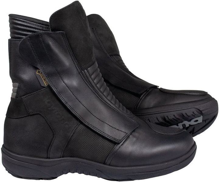 Una nuova aggiunta alla famiglia di stivali di Daytona con tacchi extra alta. Avvio leggermente più basso con parte esterna in acqua oliata -Repellente in pelle completa di manzo e dettagli in velluto. Dotato di mamabrans Durather Gore-Tex® impermeabili e respiratori e design degli interni tessili. 6 cm più in alto tramite una suola di sughero interiore che è anche coperta di pelle. La chiusura tramite doppie cerniere per l'ingresso e il comfort più facili e l'ingresso è morbido e confortevole. Nonostante la sua altezza relativamente bassa, ha una protezione alla tibia che è imbottita di lattice. Rinforzi reali in PU a pedale e protezione per le caviglie su entrambi i lati imbottiti con schiuma speciale con celle aperte. Sole media in schiuma PU e plastica che è rinforzata con acciaio zincato che lo rende rigido ma ancora camminando. Inserti riflesso da 3m-scotchlite al tallone e suola in gomma che è anche a prova di slip. Altezza dell'albero ca. 20 cm.
