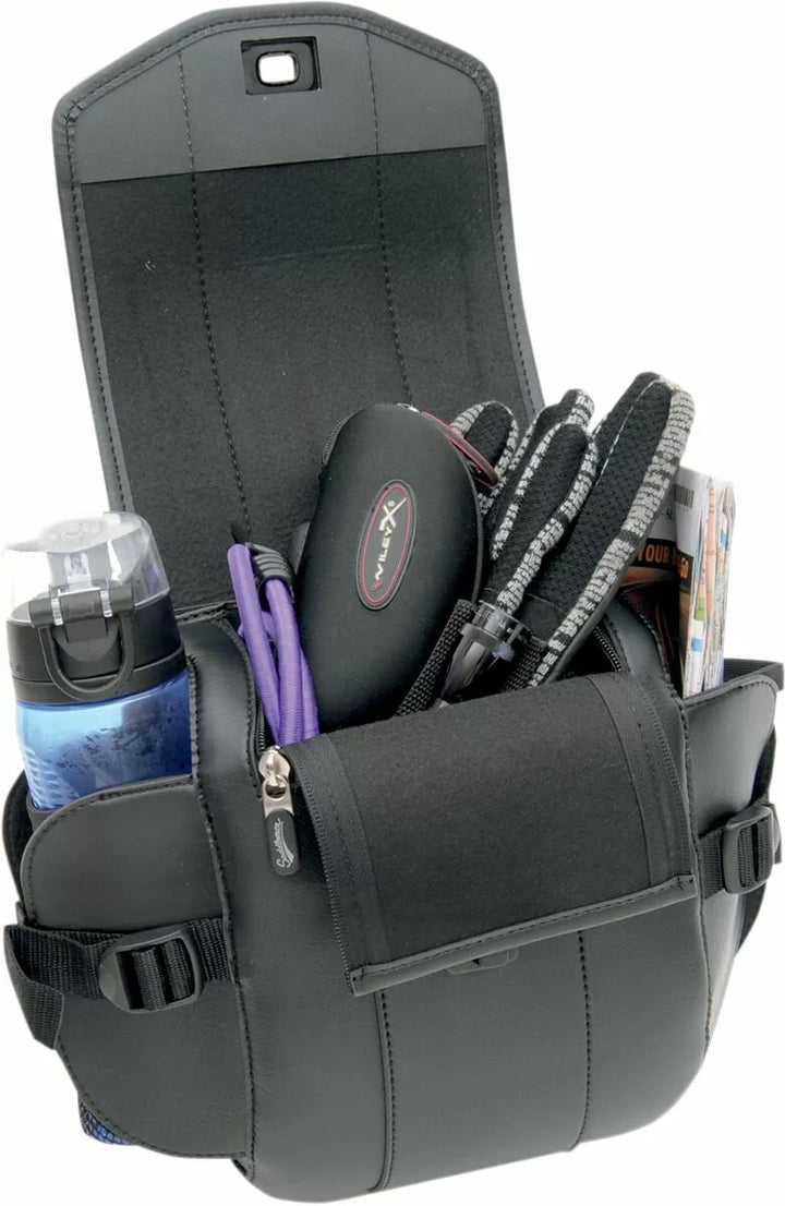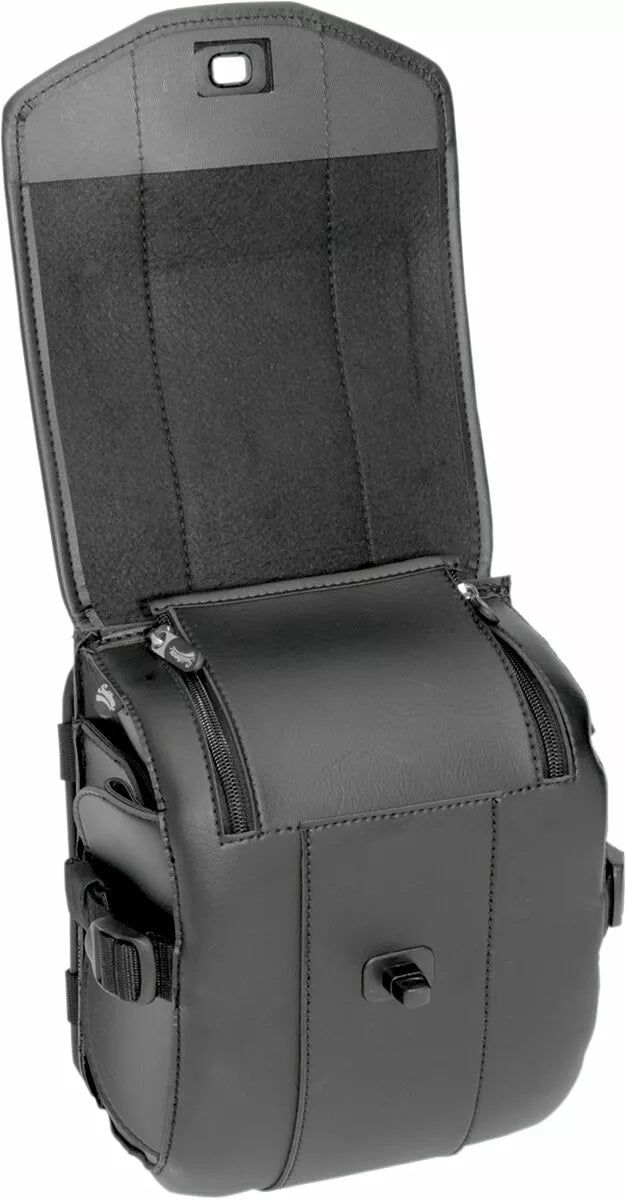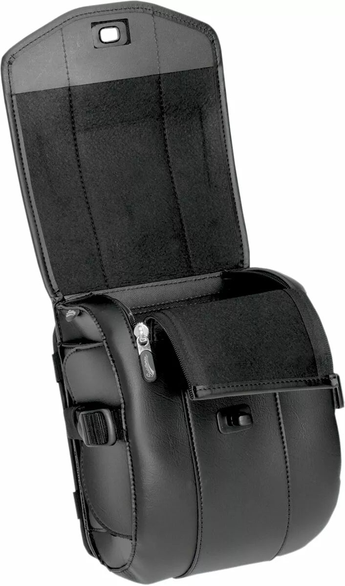 LEADING-EDGE Style and Construction Matches A Variety of Motorcycles From Customs to Performance Cruisers, Leather-Grained UV and Weather resistant 3mm Thick Saddlehyde ™ Materials with Sturdy Internal Reinforcing Hold to prote Zippered Opening Covered by Weather Flaps Fitted With ¼-Turn Hasps That Accept Mini-Padlocks For Security, Spacious Main Compartment Supplemented With Two Fold-Away Mesh Beverage Holders That Can Hold Water Bottles, Eases, Glasses E muc molto molto cinghie di montaggio per avvolgere la barra della femminuccia ma possono anche essere montati su altri oggetti, come il tuo backrest pad, misure: 8 "l x 4¼" h x 11 "w