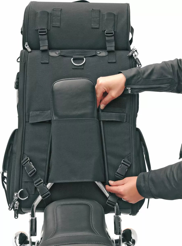 Le aperture grandi e laterali a pieno consumo consentono un facile accesso al contenuto della borsa mentre la borsa è ancora montata in bici, il sistema di montaggio a barra femminuccia completamente regolabile si svolge in pochi secondi rispetto a qualsiasi dimensione e stile di sissy bar sissy; Una volta regolato per il tuo cuscinetto di dimensioni, non è mai necessario regolarlo di nuovo, la costruzione rigida mantiene la forma del sacchetto anche se vuoto, sacchetto di rollio R850 incluso per una capacità di carico extra; Cinghie di carico superiore Montaggio includeva la borsa o la cinturino su giacca, attrezzatura da pioggia, ecc. E i suoi sistemi di montaggio separati consentono un'installazione indipendente su portapacchi, sedile o sissy, maniglia di trasporto superiore, cinturini e cinturini da shulder per bici, organizzatore di uffici di marcatura, organizzatore di spalle a tasca tosta Saddletuff ™ e pannelli Saddleyde ™ a base in pelle, senza manutenzione, abbina lo styling Desperado di altri prodotti Saddlemen, Dimensioni: 16 "D Dusus 40,64 cm Larghezza x 55,88 cm Altezza x 27,94 profondità.