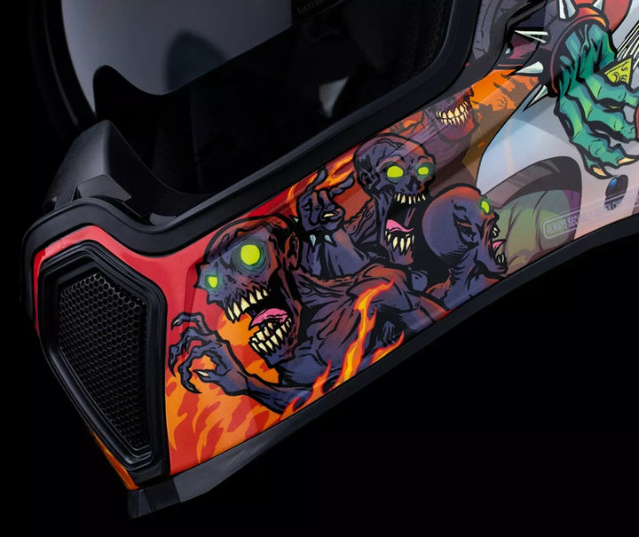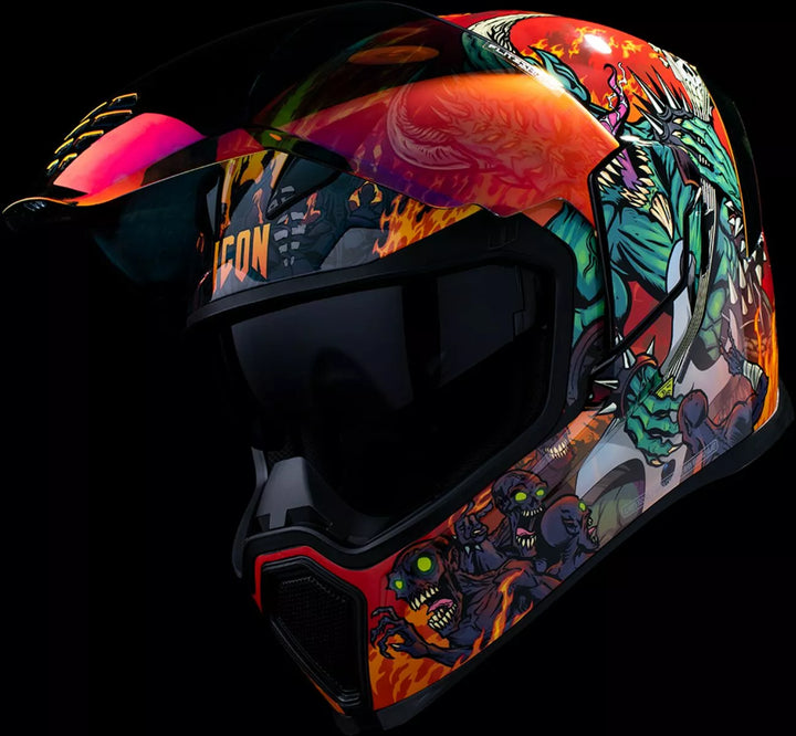 Deflettore del respiro stampato rimovibile e tende al mento, guscio di policarbonato modellato ad iniezione per resistenza, dropshield senza FAG con interruttore esterno, sistema di raffreddamento a doppio canale incassato, porte di aspirazione di aspirazione a più oversize, il viscere di dropsheld ™ deve essere usato solo mentre lo schermo del lavoro è solo in posizione chiusa, a moistica rimovi R.A.U. dell'icona Dispositivo Bluetooth, include FliteShield senza nebbia trasparente e chiaro