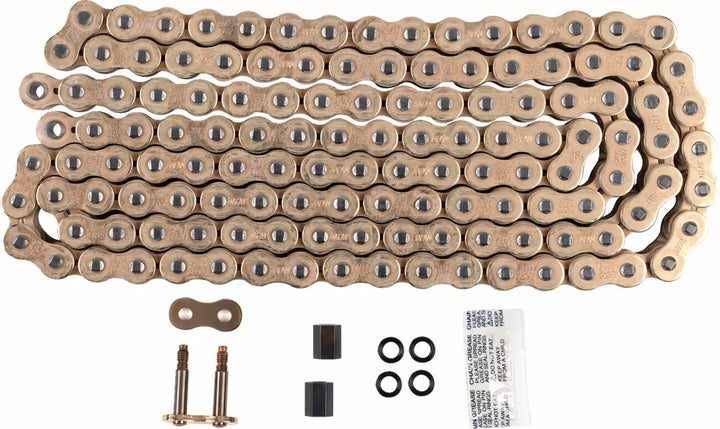 Per la concorrenza e la sostituzione OEM, è dotato di fori di illuminazione, attrito ridotto e design a X-Ring, che aumenta la durata della catena da 1,5-2 volte più a lungo di una catena di o-ring standard, è dotato di collegamento master a vite