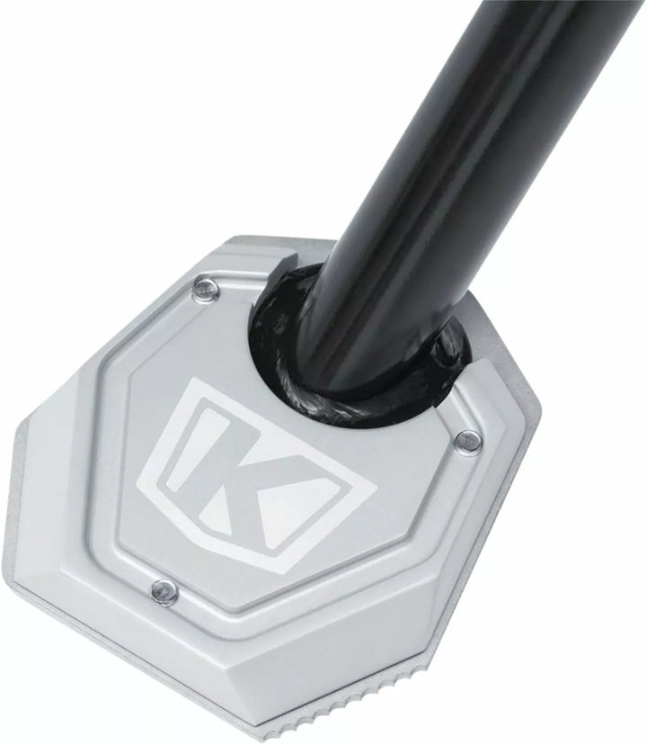 Fornisce una superficie aggiuntiva per impedire che il cavalletto si affondasse in superfici morbide, la parte inferiore in alluminio 6061-T6 a CNC con piastra inferiore in acciaio inossidabile a taglio laser, il bordo esterno può essere utilizzato per Breide su flids su FLTR. La trazione degli annunci della piastra inferiore per aiutare a distribuire il cavalletto in condizioni bagnate o fangose, include tre viti M5