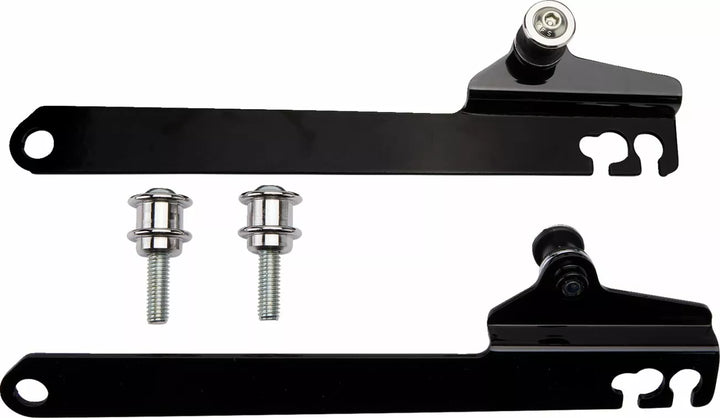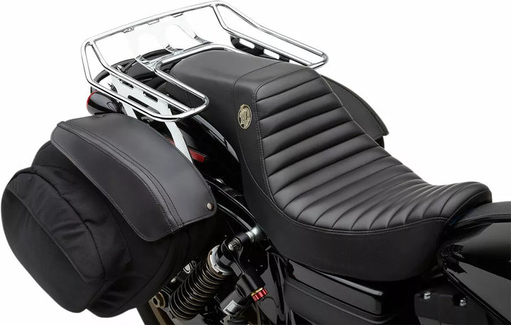 La parte superiore del rack è di livello con la parte superiore del sedile e ogni rack ha un calcio nella parte posteriore, ci sono posti per attaccare le cavi da bungee o le cinghie di montaggio in modo da non dover più graffiare il parafango della bici mentre proteggi il tuo carico, hardware di montaggio Alta. Kit di montaggio di Harley-Davidson., Se il sedile aftermarket non è Saddlemen o Lucky Daves graffi, quindi guarda carriera alle misurazioni dell'apertura per assicurarsi che il rack si adatti attorno alla tua bici.