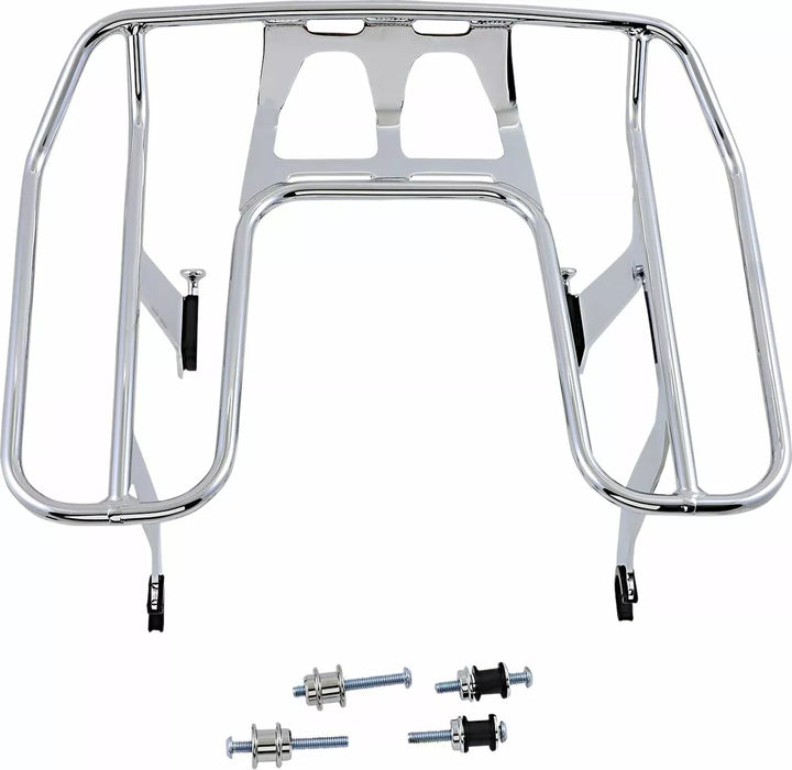 La parte superiore del rack è di livello con la parte superiore del sedile e ogni rack ha un calcio nella parte posteriore, ci sono posti per attaccare le cavi da bungee o le cinghie di montaggio in modo da non dover più graffiare il parafango della bici mentre proteggi il tuo carico, hardware di montaggio Alta. Kit di montaggio di Harley-Davidson., Se il sedile aftermarket non è Saddlemen o Lucky Daves graffi, quindi guarda carriera alle misurazioni dell'apertura per assicurarsi che il rack si adatti attorno alla tua bici.