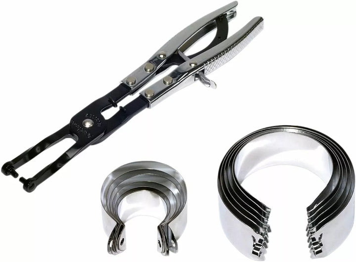 Sia il compressore ad anello che le pinze di espansore ad anello sono presenti con blocco a cricchetto per tenere le maniglie in posizione per facili installazione di pistone e anello, la maniglia di presa di Plier funziona sia in orizzontale che in verticale, funziona con diametri a pistoni 1-3/8 "-4-3/8"