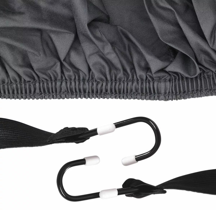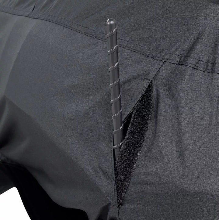 Realizzato in poliestere rivestito in poliuretano resistente all'acqua tyed personalizzato, fornendo un'eccellente protezione contro il tempo, lo sporco e l'inquinamento. Le cuciture a interblocco piegate durevoli offrono la migliore durata e resistenza alle intemperie. Con 4 cinghie elastici con ganci per aiutare a proteggere dal vento soffiato. Conveniente custodia per lo stoccaggio di stringhe compatte.