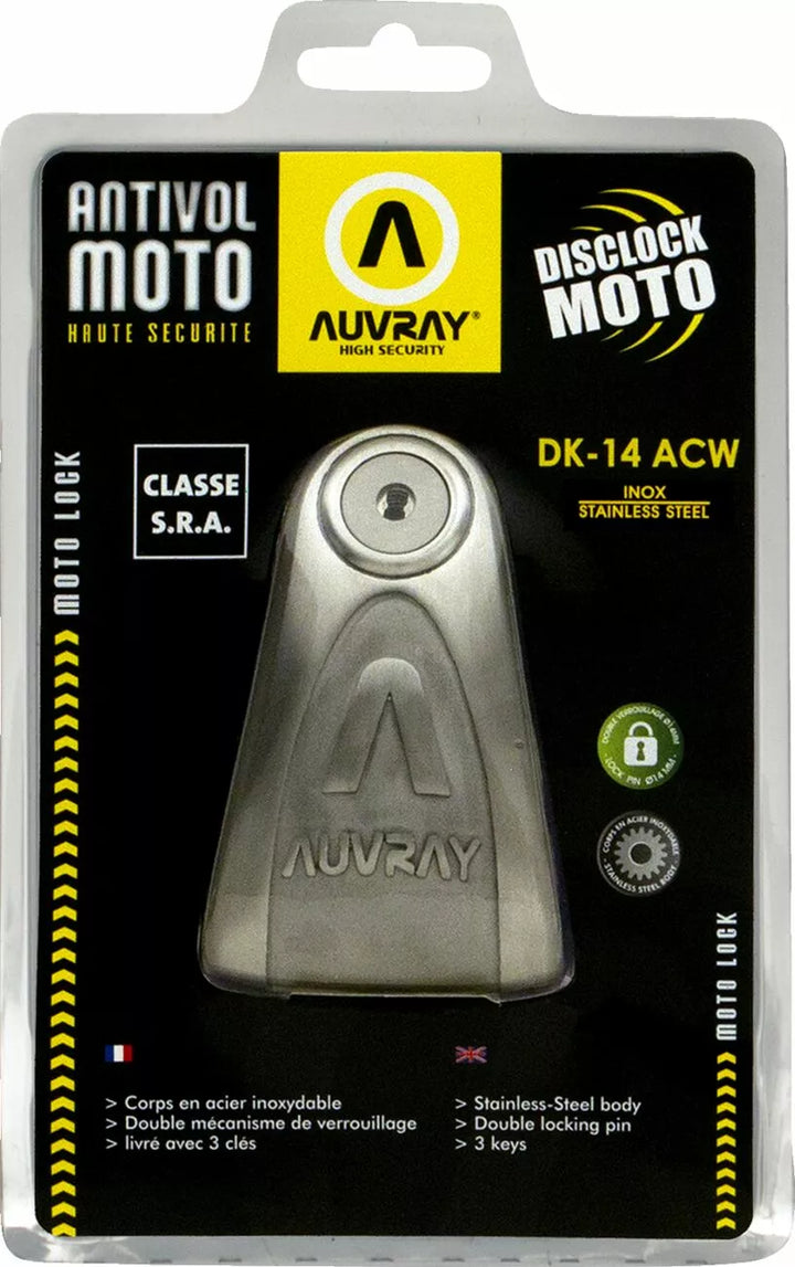Blocco del disco, segatura e prova di attacco, corpo in acciaio inossidabile, perno doppio di bloccaggio Ø 14mm, 3 tasti fresati piatti