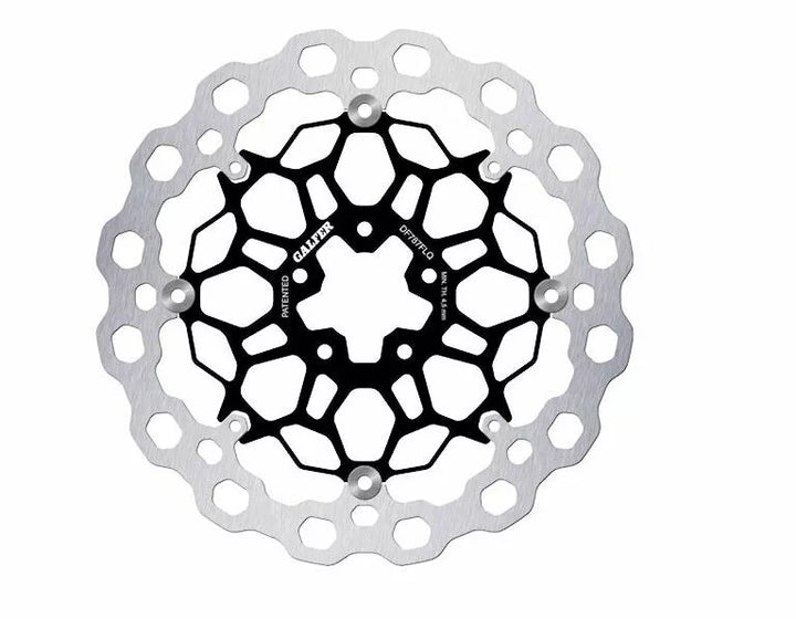 Portante in acciaio inossidabile ad alta resistenza anodizzato o cromato ad alta resistenza (AISI 420), riduzione del peso a causa di fori di superficie di frenatura unici, peso più basso delle masse non stampate., Più potenza di frenatura, migliore dissipazione del calore. Contattare la superficie pad-disco, migliorare e personalizzare l'estetica della motocicletta