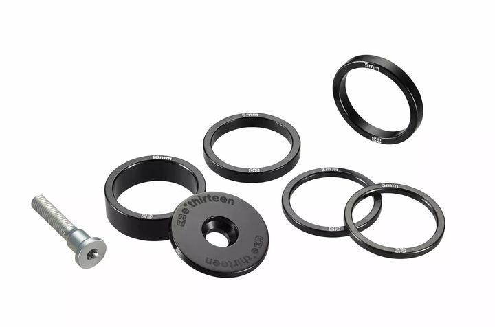 Giardiando il tuo giro con il kit di distanziali Top Cap & Aurburico di E*Tredici! , Riduci il peso e aggiungi lo stile di fascia alta mentre ottimi la cabina di pilotaggio. , Sperimenta una maggiore resistenza e prestazioni con cappuccio superiore in lega anodizzato e 7075 Al Bolt. , Il cappuccio superiore in lega leggero a basso profilo si integra perfettamente con tredici steli, ma è ugualmente a casa sulla maggior parte degli steli sul mercato. , I bulloni sono brillantemente anodizzati nei colori per abbinare E*tredici più steli e altri componenti. , Hardware T25 indica le regolazioni singoli dello strumento di qualsiasi parte del gruppo E*Tredici bar/stelo., 5 distanziatori di cuffie in lega anodizzate nere in più dimensioni consentono la massima flessibilità nella regolazione dell'ascesa. , Dimensione: 34,8 mm di diametro., Peso: 33G/kit., Ambito di consegna: tappo superiore, bullone di sterzo, 1x10mm, 2x5mm e 2x3 mm distanziatori di cuffie in lega anodizzate nere.