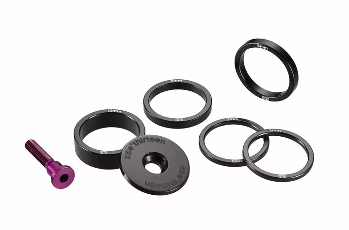 Giardiando il tuo giro con il kit di distanziali Top Cap & Aurburico di E*Tredici! , Riduci il peso e aggiungi lo stile di fascia alta mentre ottimi la cabina di pilotaggio. , Sperimenta una maggiore resistenza e prestazioni con cappuccio superiore in lega anodizzato e 7075 Al Bolt. , Il cappuccio superiore in lega leggero a basso profilo si integra perfettamente con tredici steli, ma è ugualmente a casa sulla maggior parte degli steli sul mercato. , I bulloni sono brillantemente anodizzati nei colori per abbinare E*tredici più steli e altri componenti. , Hardware T25 indica le regolazioni singoli dello strumento di qualsiasi parte del gruppo E*Tredici bar/stelo., 5 distanziatori di cuffie in lega anodizzate nere in più dimensioni consentono la massima flessibilità nella regolazione dell'ascesa. , Dimensione: 34,8 mm di diametro., Peso: 33G/kit., Ambito di consegna: tappo superiore, bullone di sterzo, 1x10mm, 2x5mm e 2x3 mm distanziatori di cuffie in lega anodizzate nere.