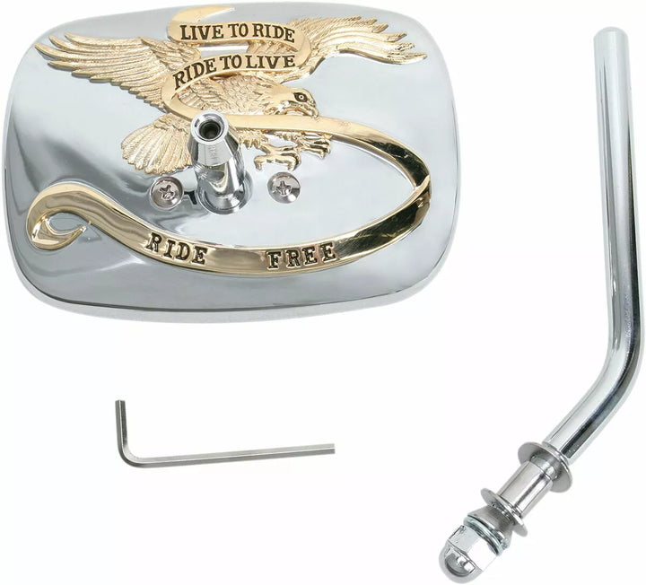Allen Wrench for Setscrew, Chromed Acorn Nut and Necessary Mounting Hardware Included, High-Quality Die-cast Mirro's feature "Live to ride ... Ride Free" Script, Miller Milror Clamp Part# DS-30202020202020202020 Is Required. Si adatta solo a 1 "bar.