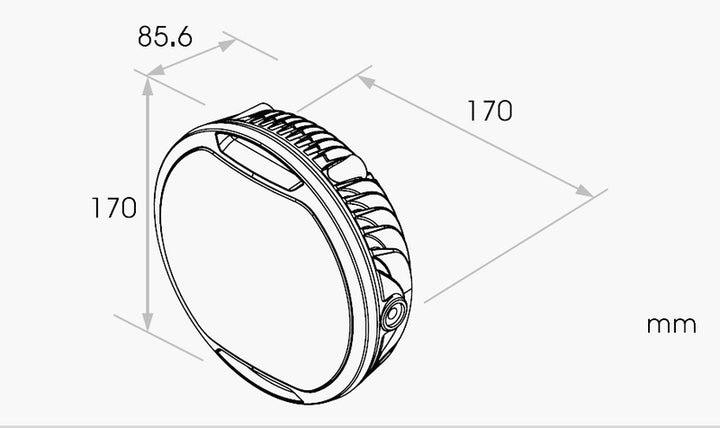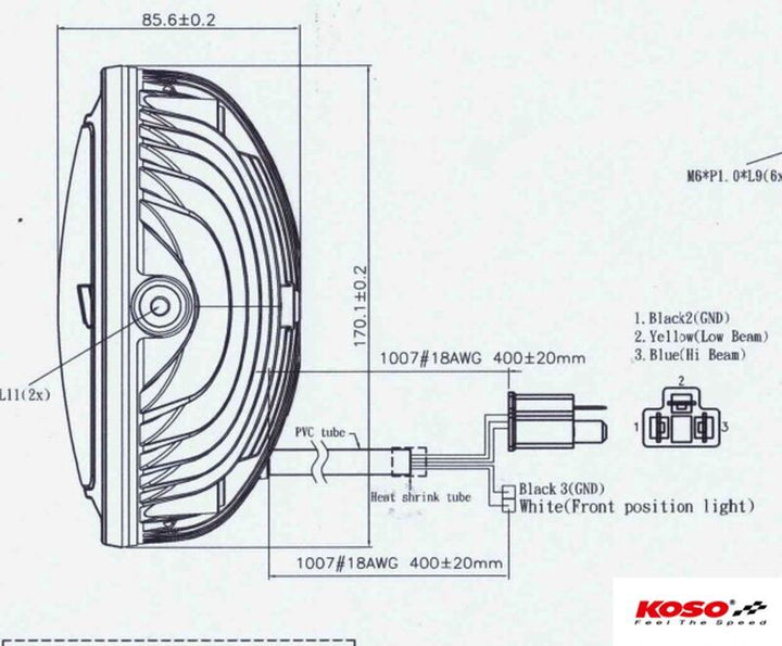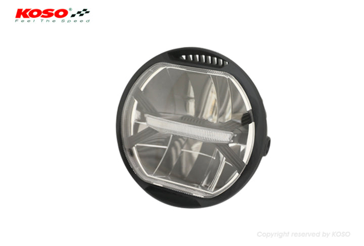 Felanco a LED Koso Thunderbolt 170mm diametro di 170 mm; Profondità di 86 mm con vetrata con due vite M8 sul lato DC 12V 15,1 W su una trave a traco