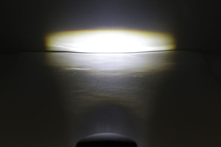 Farcio di luce infernale compatto e potente a LED in casa in alluminio nero opaco con robusta staffa in acciaio. L'uso della tecnologia a LED moderna combina dimensioni minime alte con elevata luminosità. Tre potenti diodi SMD con lente ovale forniscono una luce simmetrica e chiara per una maggiore visibilità e sicurezza.