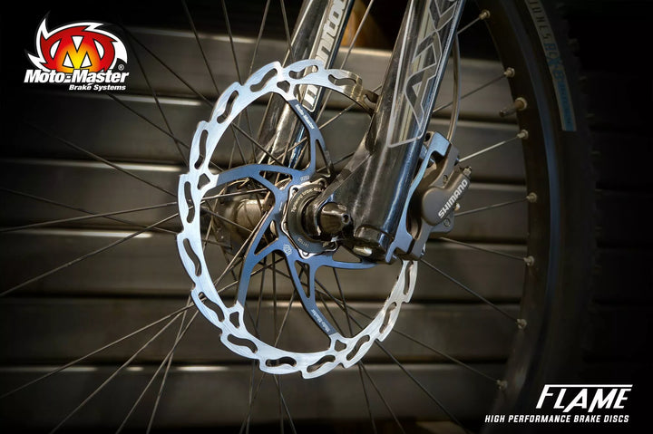 Il nostro leggendario disco del freno di design a fiamma crea la soluzione perfetta per i ciclisti in bicicletta che cercano un controllo migliorato e una potenza di arresto modulare., Design leggero. Le pastiglie dei freni a disco moto-master con il composto pad corrispondente si adatta meglio al tipo di guida.