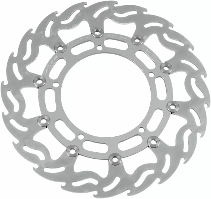 Flame Discs Are Made From Hardended and Refined Chrome-Molybdenum Alloy Steel, Material Ensures Extremely Little Rotor Wear and High-Performance Braking, Flame Discs Are Precision Lasercut, CNC-DRilled and FLAPACE-MACHIND Surface Are Designed for Efficient Cooling and Disc Cleaning to Evacuate Water and Mud, Discs Can Be Used With Any Type of Brakepad, Including Sintered, Aramid, and Ceramic Carbon Pads