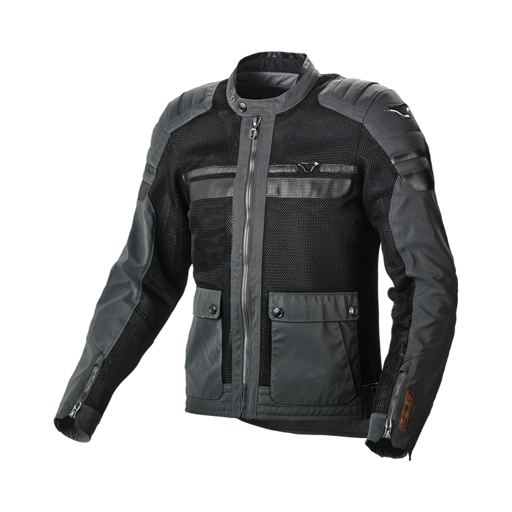 Giacca da moto MacNA, occhio fluido nere/nero notturno/marrone