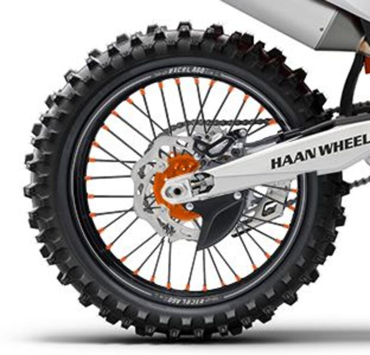 Haan Wheels produce ruote complete per i modelli fuoristrada più popolari. Tutte queste ruote sono costruite con le migliori parti di qualità disponibili. Haan Wheels ha aiutato più di 35 ciclisti a ottenere i loro titoli del campionato mondiale e attualmente oltre il 50% del campo nelle corse del campionato mondiale utilizza i loro prodotti.