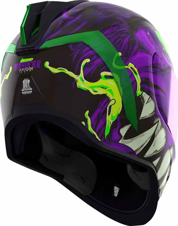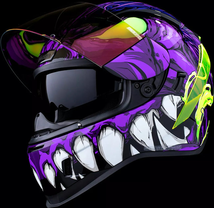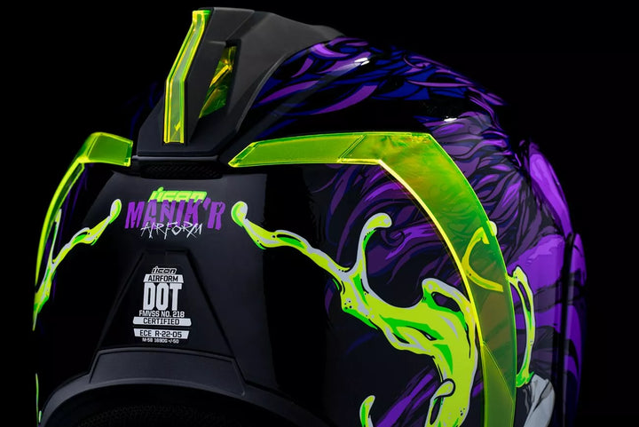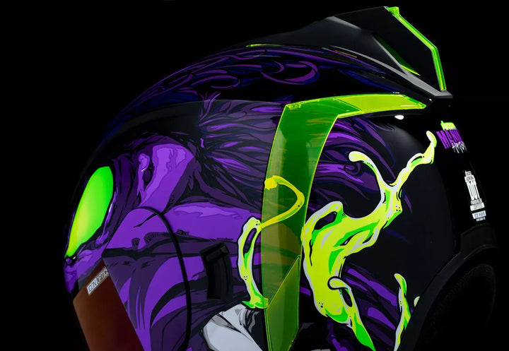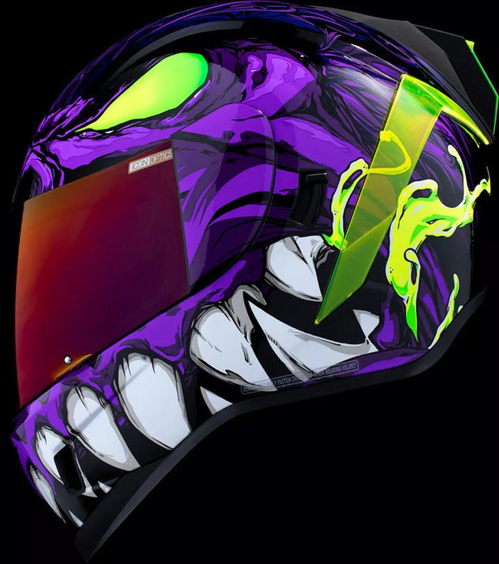 Sistema di sfiato continuo, scudo icon Optics ™ senza FAG con sistema a rilascio rapido ™, guscio di policarbonato stampato ad iniezione per resistenza, geometria del flusso d'aria interno, rotolo di collo scolpito, prolock ™ switsch, esterno con la vigilia di swequ a chiusura a bloccare la vigilia dello swequ Rilegatore, tasche per altoparlanti interni funzionano con R.A.U. di ICON Dispositivo Bluetooth, include Dark Smoke Dropshield ™ e Rubatone Black SpeedFin ™