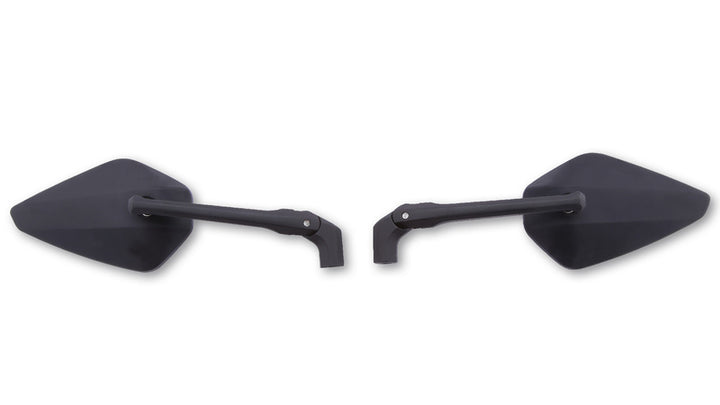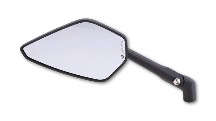 Braccio specchio regolabile in alluminio anodizzato nero matto con manico regolabile e vetro convesso. Grazie all'uso di un secondo giunto sulla maniglia, ci sono ulteriori possibilità di regolazione per la tua sicurezza. Include un adattatore extra M10 x 1,25 mm con thread a sinistra per Yamaha, E-approvato.