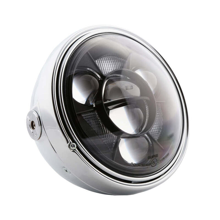 Della massima importanza per i motociclisti. Su molte moto, la lampada H4 o H7 brilla, più o meno scintillando. Vedere meglio di solito significa anche essere visti meglio, non irrilevante quando l'estate si trasforma in autunno e nei momenti in cui le auto sono sempre più equipaggiate con luci di marcia diurne brillanti. Sia per la sostituzione di una migliore visibilità di notte, una migliore riconoscibilità durante il giorno o per dare alla tua moto un aspetto più bello, se stai cercando un faro di potenza in stile e innovativo, il faro principale a LED è una scelta eccellente. La luce di corsa diurna a LED incorporata nel tipo 11 è il modo perfetto per migliorare la visibilità durante il giorno. I LED ellissoidali in combinazione con potenti LED trasformano la notte in giorno e quindi combinano un vantaggio forte in sicurezza con un aspetto unico di polarizzazione. Il proiettore è protetto da un alloggiamento in metallo di alta qualità ed è disponibile in nero o cromo con un riflettore nero e un gelato trasparente. Il riflettore emette un flusso luminoso asimmetrico - approvato solo per il traffico destro.