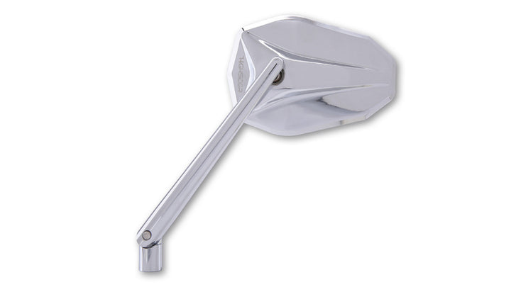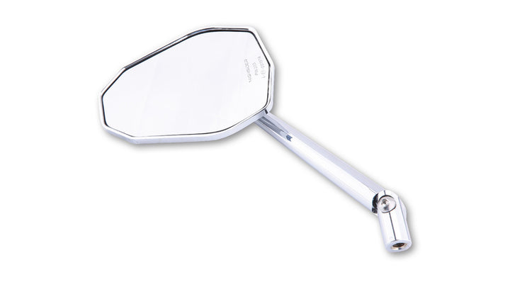 Elegante specchio universale con una testa di alluminio cromata e stelo regolabile. Grazie all'uso di un secondo giunto sulla maniglia, ci sono ulteriori possibilità di regolazione per la tua sicurezza.