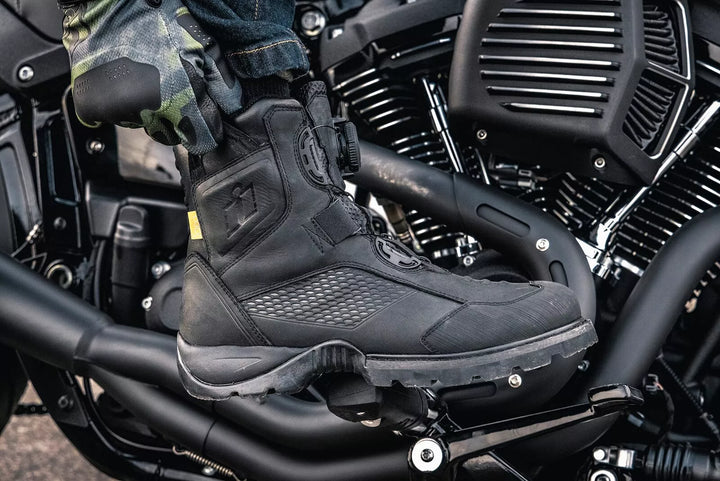 La tomaia in pelle premium è una finitura resistente all'acqua, eventi traspiranti impermeabili a secco, le suole in gomma a olio altamente legato/ resistenti a slittamento offrono prestazioni di picco di motociclisti, passi da sole in poliuretano a cella aperta, BA. Fit comodo, inserti dual d3o® forniscono copertura della caviglia, tappi di punta in gomma rinforzati, accenti di tallone riflettente e NUB dell'interfaccia Shifter
