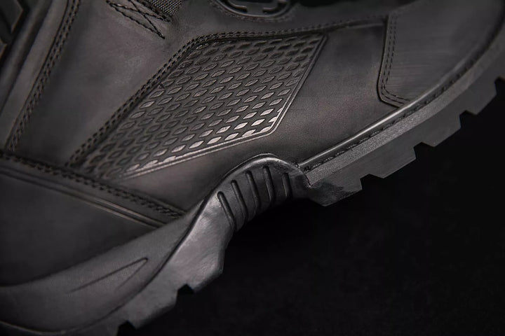 La tomaia in pelle premium è una finitura resistente all'acqua, eventi traspiranti impermeabili a secco, le suole in gomma a olio altamente legato/ resistenti a slittamento offrono prestazioni di picco di motociclisti, passi da sole in poliuretano a cella aperta, BA. Fit comodo, inserti dual d3o® forniscono copertura della caviglia, tappi di punta in gomma rinforzati, accenti di tallone riflettente e NUB dell'interfaccia Shifter