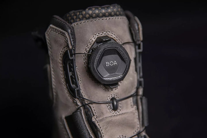 La tomaia in pelle premium è una finitura resistente all'acqua, eventi traspiranti impermeabili a secco, le suole in gomma a olio altamente legato/ resistenti a slittamento offrono prestazioni di picco di motociclisti, passi da sole in poliuretano a cella aperta, BA. Fit comodo, inserti dual d3o® forniscono copertura della caviglia, tappi di punta in gomma rinforzati, accenti di tallone riflettente e NUB dell'interfaccia Shifter