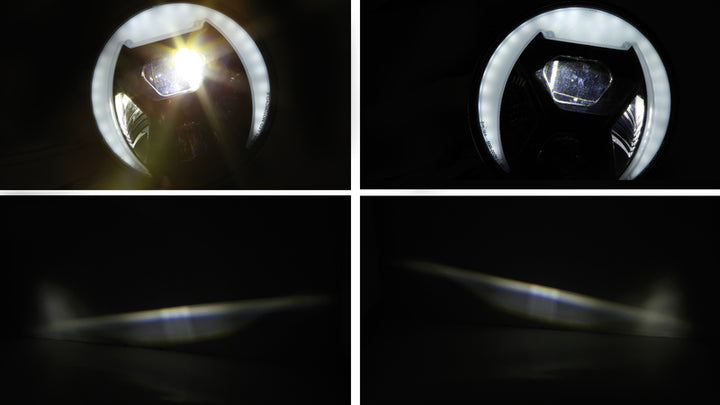 Il faro a LED Highsider con luce in curva, offre chiari vantaggi su un faro convenzionale. La luce in curva statica attiva una luce aggiuntiva quando la motocicletta è inclinata in una curva. A causa della migliore illuminazione puoi vedere più della curva e di ciò che c'è dietro. L'autista può adattarsi meglio alle condizioni e alle situazioni ed è più sicuro sulla strada. Due ellissoidi prestano in combinazione con potenti LED trasformano la notte in giorno e quindi combinano un vantaggio forte in sicurezza con un look unico polarizzante.