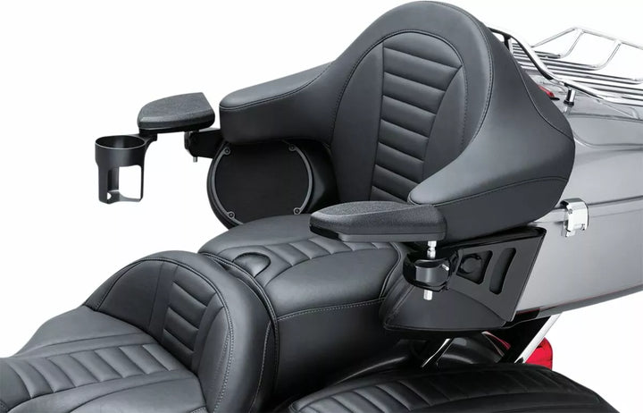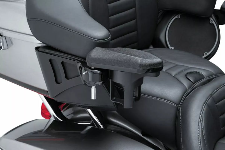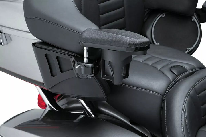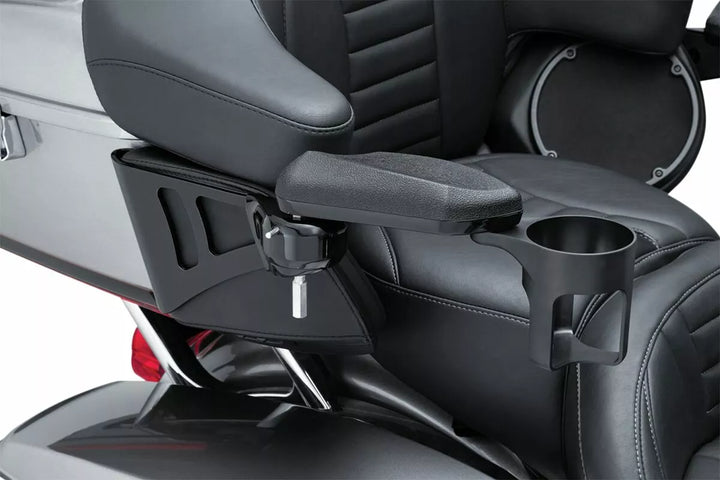 I braccioli possono essere regolati in verticale e ruotati di mezzo quando si monta e lo smont, rimuovere i braccioli con una semplice spinta di un pulsante quando non è necessario, la staffa di montaggio di montaggio si muove comodamente tra il tour -pak e il caos altoparlanti completa altri componenti di fabbrica, include una tazza tenuta sul lato destro - il supporto per coppa fornita può essere spostato a sinistra sul lato sinistro