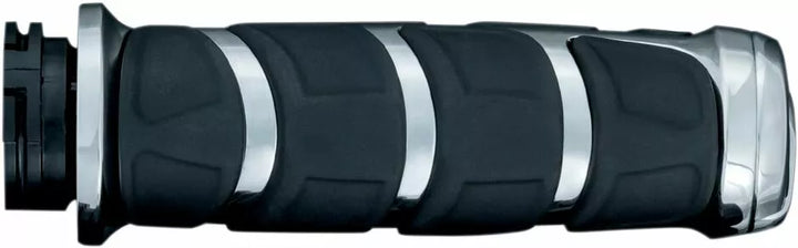 Progettato per continuare ad andare avanti con le più recenti tecnologie di styling e vibrazione, presentano un corpo in alluminio e inserti in gomma EPDM per aiutare il guidatore a guidare con meno stanchezza e un maggiore controllo in un design moderno, un diametro esterno leggermente più piccolo rispetto al design ISO ル -grip, non compatibile con il boss Iso-Throttle o altri accessori che si avvicinano per afferrare la fine con motivi a quattro buchi