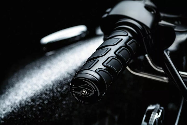 Progettato per continuare ad andare avanti con le più recenti tecnologie di styling e vibrazione, presentano un corpo in alluminio e inserti in gomma EPDM per aiutare il guidatore a guidare con meno stanchezza e un maggiore controllo in un design moderno, un diametro esterno leggermente più piccolo rispetto al design ISO ル -grip, non compatibile con il boss Iso-Throttle o altri accessori che si avvicinano per afferrare la fine con motivi a quattro buchi