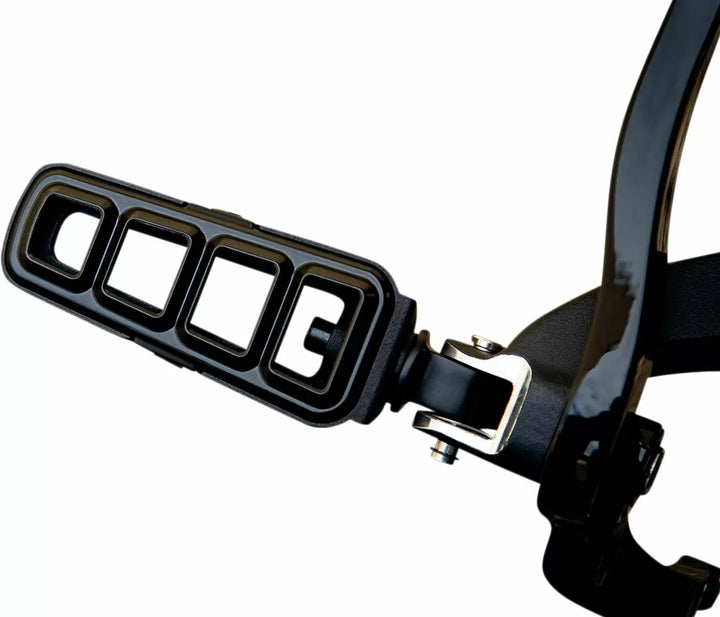 Il sistema in 2 parti che consente di cambiare i pioli senza acquistare nuovi adattatori, richiede footpeg senza adattatori, consente l'angolo del footpeg e del pavimento di essere impostato e bloccato in posizione, presenta spline che abbinano le assi del pavimento