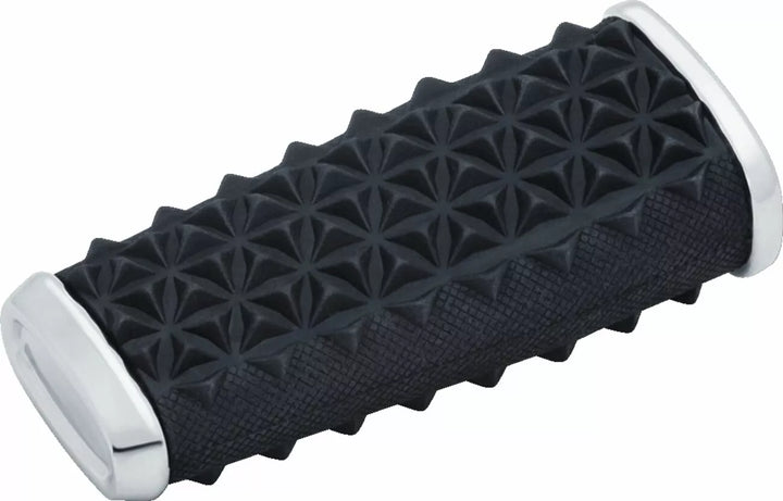 Alloggi in alluminio aerodinamici avvolti in gomma morbida EPDM, la gomma knurled presenta un design ispirato al dente di squalo e offre una trazione ideale, in stile per abbinare impugnature e pioli per la trebbia di Kuryakyn