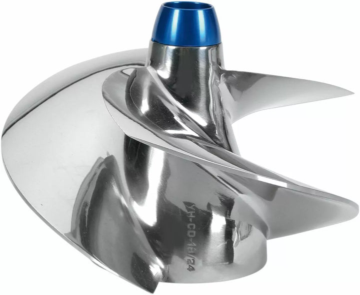 Il passo variabile offre sia coppia a bassa velocità che alta velocità in una girante, il sigillo acquatico esclusivo del mozzo mantiene le cose cattive fuori da parti preziose, migliora la manovrabilità a tutta gamma senza slittamento in collegio d'acqua, acciaio inossidabile costruito. Vedi le colonne appropriati in tabella., La girante in basso è consigliata per applicazioni ad alta quota, tiri o freestyle. Il tono della girante è determinato dal casting, non dalla flessione.