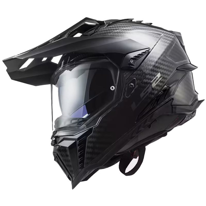 LS2 Adventure MC Helmet Explorer Carbon è il casco finale per le rotte a lunga distanza e tutti i tipi di substrati. Questo casco combina la massima sicurezza e facilità grazie alla sua costruzione in fibra di carbonio, che lo rende ideale per la guida dell'avventura.