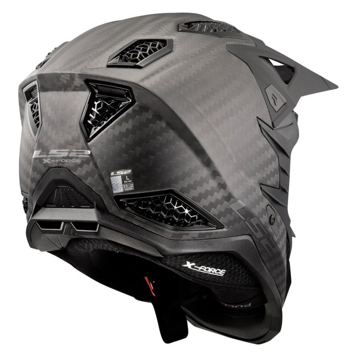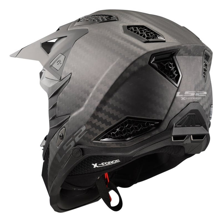 LS2 Cross MC Helmet X-Force Carbon combina design aggressivo, sicurezza e comfort, rendendolo una scelta eccellente per i conducenti che cercano un casco affidabile e ad alte prestazioni per la guida fuoristrada.