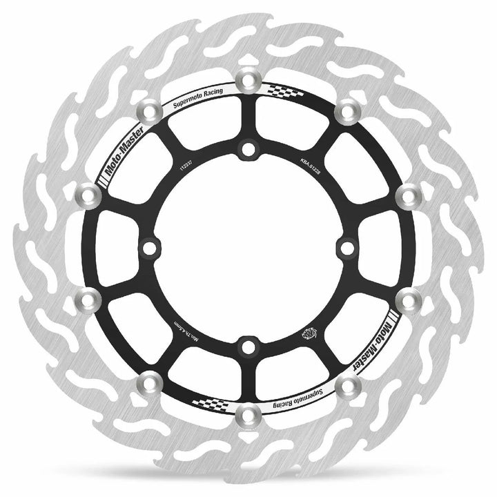 I rotori a fiamma anteriore galleggiante da 320 mm sono speciali progettati per l'uso con pinze a 4 pistoncini Moto-Master e non sono una sostituzione OE, il portatore interno è un pezzo anodizzato in alluminio e lo spessore del rotore è stato aumentato rispetto al processo di test del supermil di Moto Master)