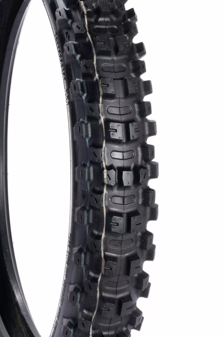 L'ultima aggiunta alla gamma di pneumatici Motoz MX è il pneumatico per competizione Terrapactor MXI (MX Intermediate). Ingegnerizzato con una carcassa leggera e progettata per eccellere in terreni intermedi a duri (mix di terreno sciolto e confezionato, terreno duro e routine pesanti profonde). Il punto di riferimento per le prestazioni dei pneumatici MX su più tipi di terreno!, MXI Tire si distingue con il suo modello distintivo, specificamente realizzato per offrire le migliori prestazioni. Incorporando strategicamente punti flessibili all'interno della carcassa e delle manopole, il pneumatico MXI fornisce prevedibilità e impugnatura angolare migliorata, adattandosi e flettendo secondo il terreno per dare maggiore controllo e fiducia durante la guida. Hard Packed Soil and Deep Heavy Ruts), Full Range from Mini-Cross to Big Bikes (15 Different Sizes), Two Front Tyre Sizes, 80/100-21 For the Most Aggressive On Track Performance and the All-New 90/100-21 With a Taller Profile for Increased Conditions, Unique Flex Zones Built Into Carcass and Knobs For Improved Feel and Compliance, Flex Zones Incorporated Into All Treat Rows to Improve Corning Feel and Drive, All New Inner Sidewall Costruzione per una migliore conformità