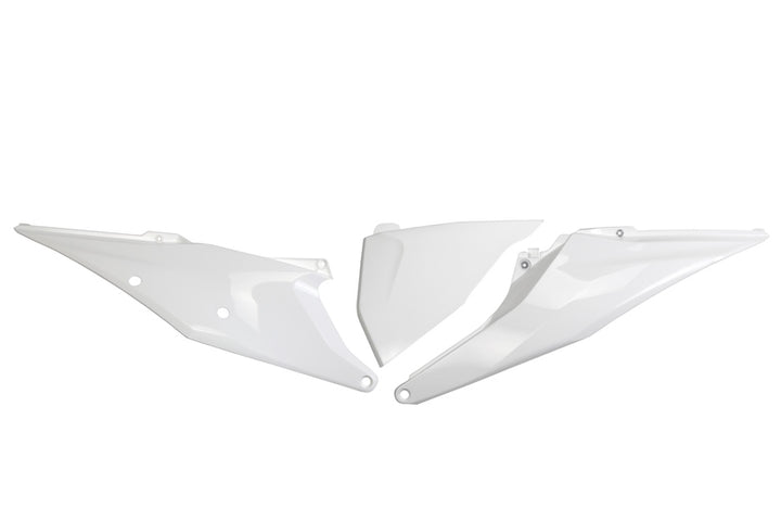 Le materie plastiche UFO sono rinomate per la loro qualità e la loro resistenza all'uso fuoristrada. Sono progettati come una plastica OEM e sono facili da montare. Sono utilizzati dalle migliori squadre MXGP di oggi MXGP e campioni del mondo. OEM Type Fated from UV, Choc e torsion Resistente alla plastica iniettata: bianco