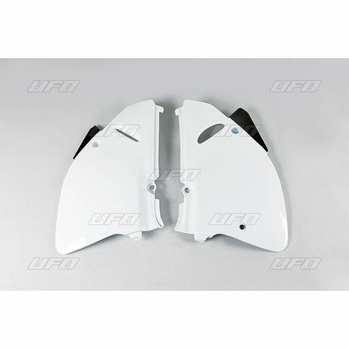 Le materie plastiche UFO sono rinomate per la loro qualità e la loro resistenza all'uso fuoristrada. Sono progettati come una plastica OEM e sono facili da montare. Sono utilizzati dalle migliori squadre MXGP di oggi MXGP e campioni del mondo. OEM Type Fated from UV, Choc e torsion Resistente alla plastica iniettata: bianco