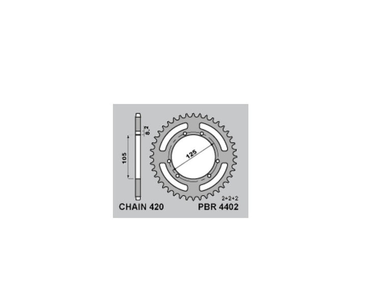 Pitch a catena: 420.0 Colore: materiale nero: denti posteriori in acciaio: 50.0 Tipo posteriore: 4402 Versione posteriore: Standard