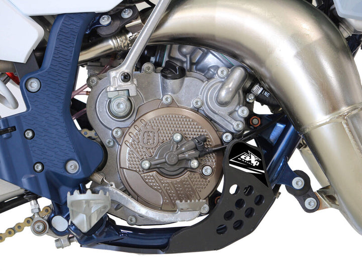 Realizzato in plastica in polietilene di spessore 6 mm, la piastra skid copre il sottotelaio e protegge il motore e le custodie dalle proiezioni.