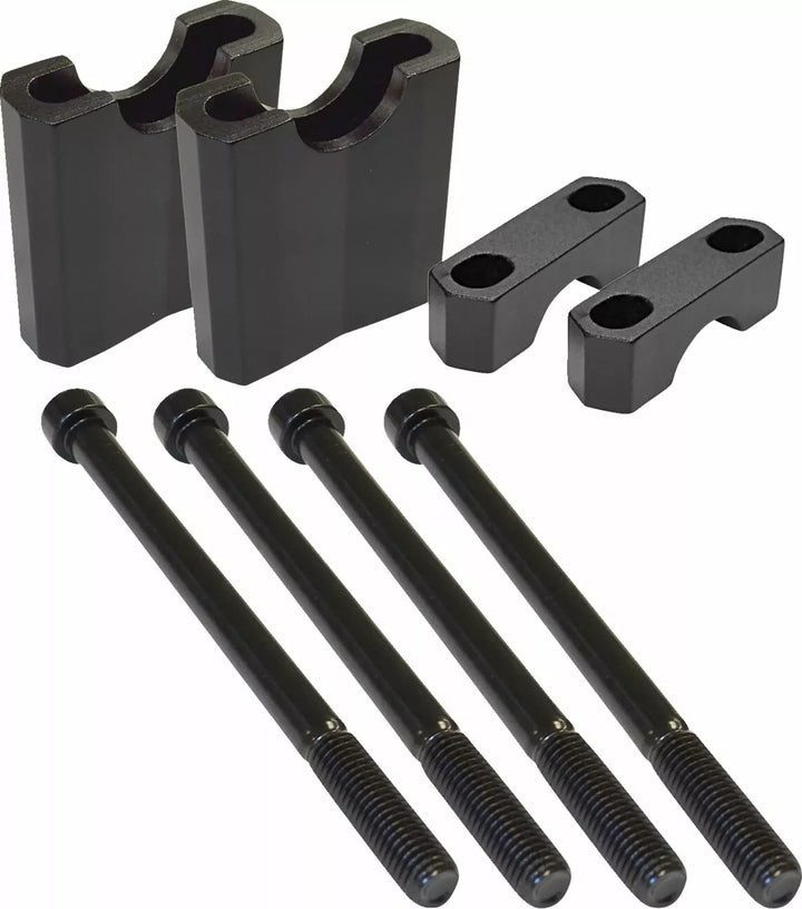 Si adatta solo alle barre da 7/8 ", funzionerà con qualsiasi modello di bullone a causa del design vuoto, in alluminio estruso 6061, uso di tappi OEM inclusi, due morsetti sono inclusi in ciascun kit, riser per ATV e motociclette con barre da 7/8" M8 ",