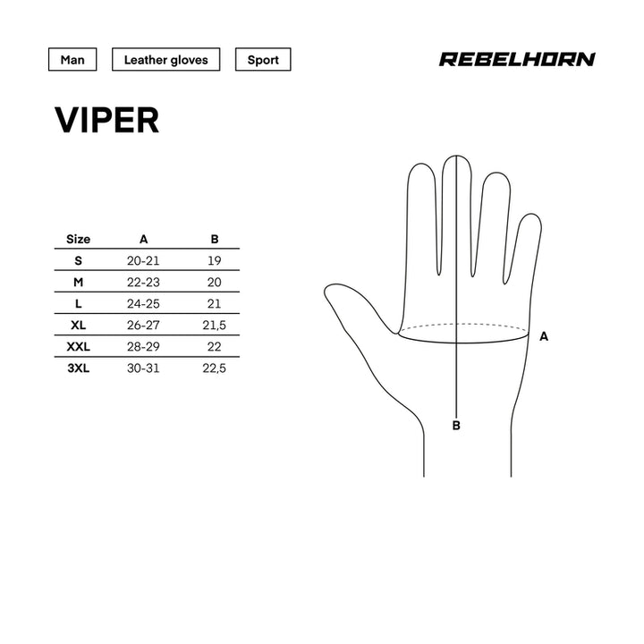 Rebelhorn Vipera è uno Guanto ad alta prestazione Per colui che guida sportivo e alla ricerca della massima sicurezza e comfort. Protezione dura, cursore e rinforzi lo rende un Scelta sicura, Mentre perforazione e compatibilità touchscreen Aumenta conforto e funzionalità.