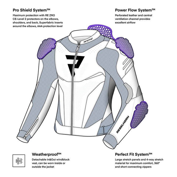 Rebelhorn Inferno È la scelta per coloro che desiderano una giacca sportiva in pelle intransigente, costruita per fornire sicurezza, stile e piacere di guida sia su strada che su pista.