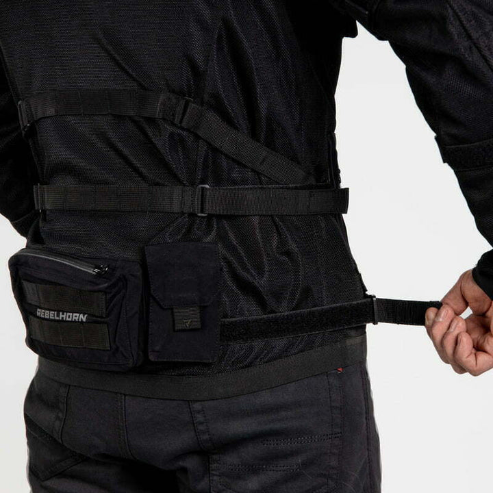 Cinghie alle estremità della vita e della manica e cinghie regolabili all'anca.